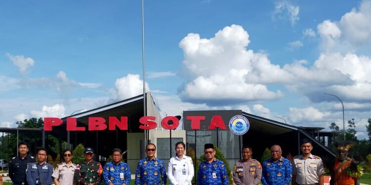 Merauke – Bertempat di PLBN Sota, distrik Sota, Kab. Merauke telah tiba Prof. Zudan Arif Fakrullah S.H., M.M. (Sekretaris utama BNPP RI) beserta rombongan dalam rangka kunjungan kerja di PLBN Sota, Jumat (29/12/2023).