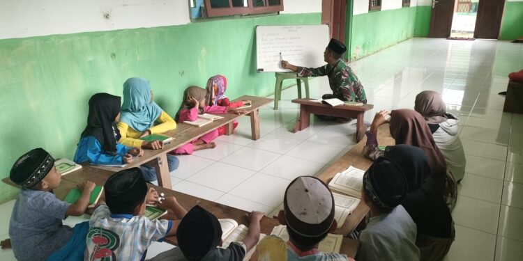 Merauke – Selain menjaga kedaulatan dan keutuhan wilayah di perbatasan RI-PNG, Satgas Pamtas Yonif 726/Tml melakukan kegiatan pembinaan mengajar hafalan surat-surat pendek Al Quran di Masjid Al-Muttaqin, Kp. Tomer Distrik Naukenjerai, Jumat (24/05/2024).