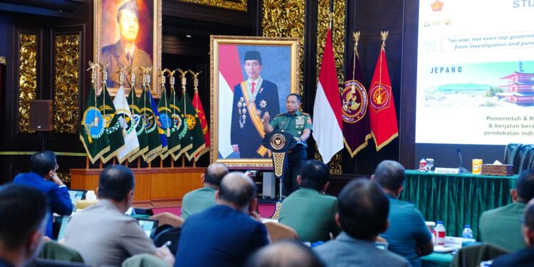 Jakarta – Panglima TNI Jenderal TNI Agus Subiyanto hadir memenuhi undangan Kemhan RI untuk memberikan ceramah pada program Executive Course on Strategic Management and Leadership Cohort-1 Unhan RI TA 2024 bertempat di Ruang Bhineka Tunggal Ika, Gedung Jenderal Sudirman Kemhan RI Jakarta Pusat, Rabu (26/6/2024).
