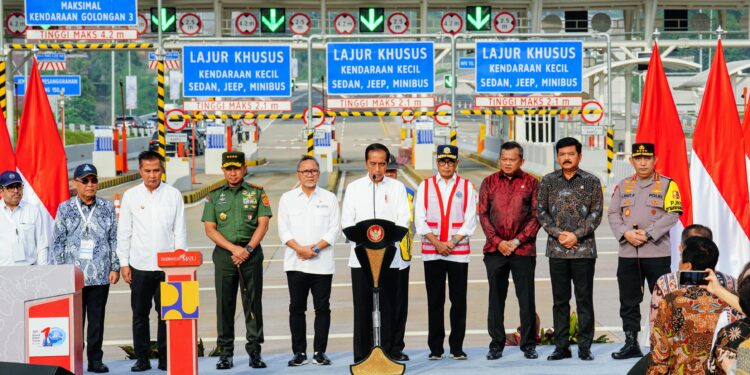 Jabar – Panglima TNI Jenderal TNI Agus Subiyanto mendampingi Presiden Joko Widodo (Jokowi) meresmikan ruas Tol Jalan Pamulang-Cinere-Raya Bogor, bertempat di Gate Tol Limo Utama, Depok, Jawa Barat, Senin (8/1/2024).
