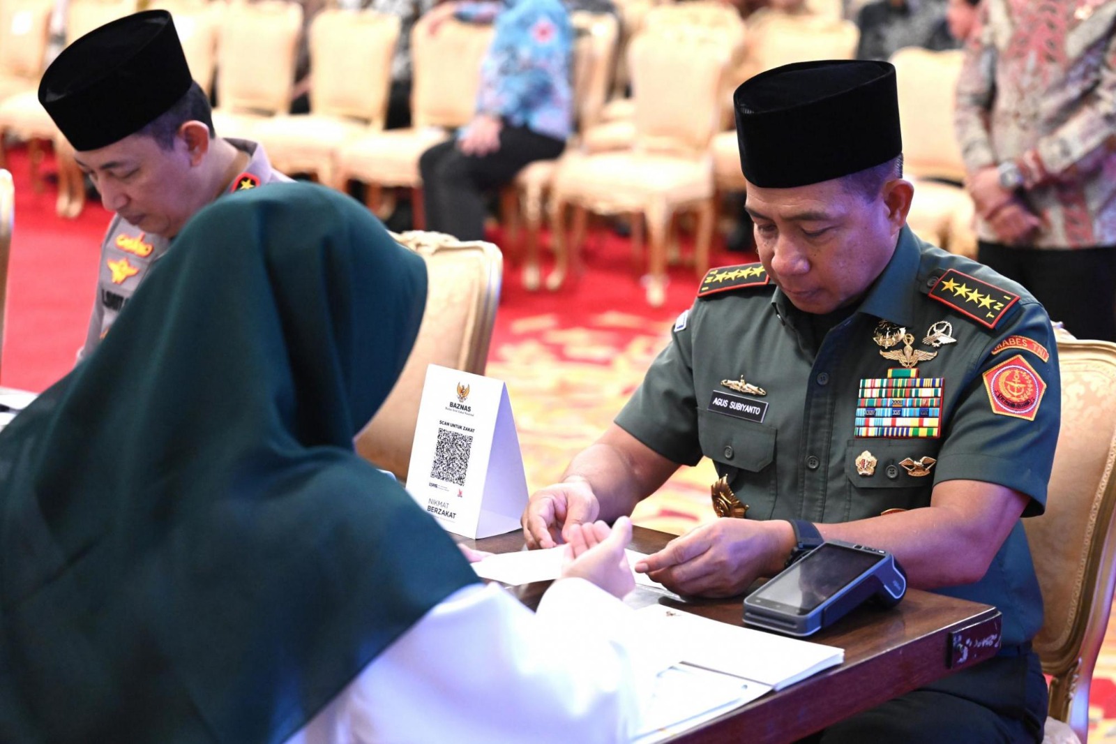 Jakarta – Panglima TNI Jenderal TNI Agus Subiyanto, S.E., M.Si. menghadiri acara Penyerahan Zakat kepada Badan Amil Zakat Nasional (Baznas) Tahun 2024, oleh Presiden RI Ir. H. Joko Widodo, bertempat di Istana Merdeka, Jakarta, Rabu (13/03/2024).