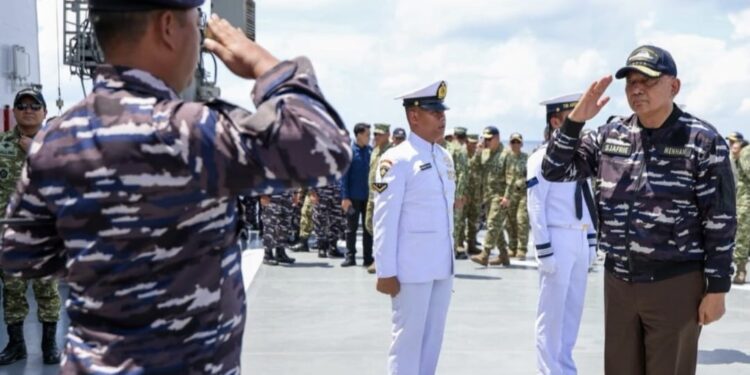 Pulau Gundul || Panglima Korps Marinir (Pangkormar) Letnan Jenderal TNI (Mar) Dr. Endi Supardi, S.E., M.M., M.Tr.Opsla., CHRMP., CRMP. mendampingi Kepala Staf Angkatan Laut (Kasal) Laksamana TNI Dr. Muhammad Ali, S.E., M.M., M.Tr.Opsla. meninjau langsung pelaksanaan Latihan Operasi Laut Gabungan (Latopslagab) dan Penembakan Senjata Khusus (Baksenkhus) Tahun 2026 di Pulau Gundul, Kepulauan Karimunjawa, Jawa Tengah, Kamis (23/04/2026).