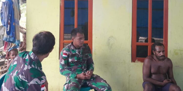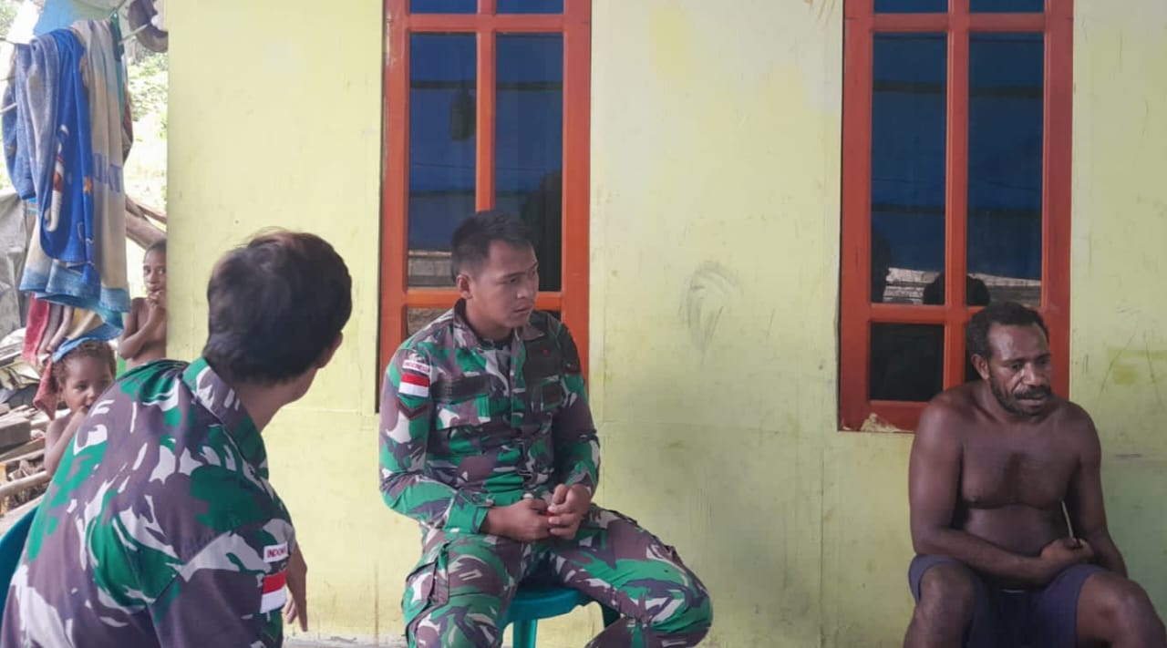 Pegunungan Bintang – Guna membangun kohesi yang erat dengan masyarakat di wilayah Papua, para prajurit aktif melaksanakan komunikasi dan interaksi humanis dengan warga sebagaimana perintah harian Kasad yaitu melakukan tindakan-tindakan yang berdampak timbulnya rasa cinta dan sayang masyarakat kepada TNI.