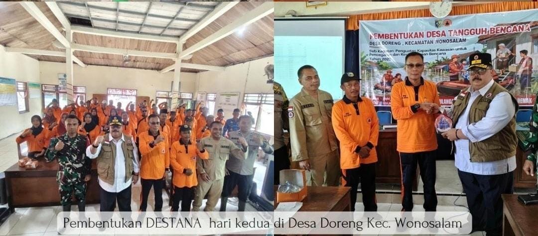 – Pembentukan Desa Tangguh Bencana (DESTANA) hari kedua di Desa Doreng, Kec. Wonosalam.