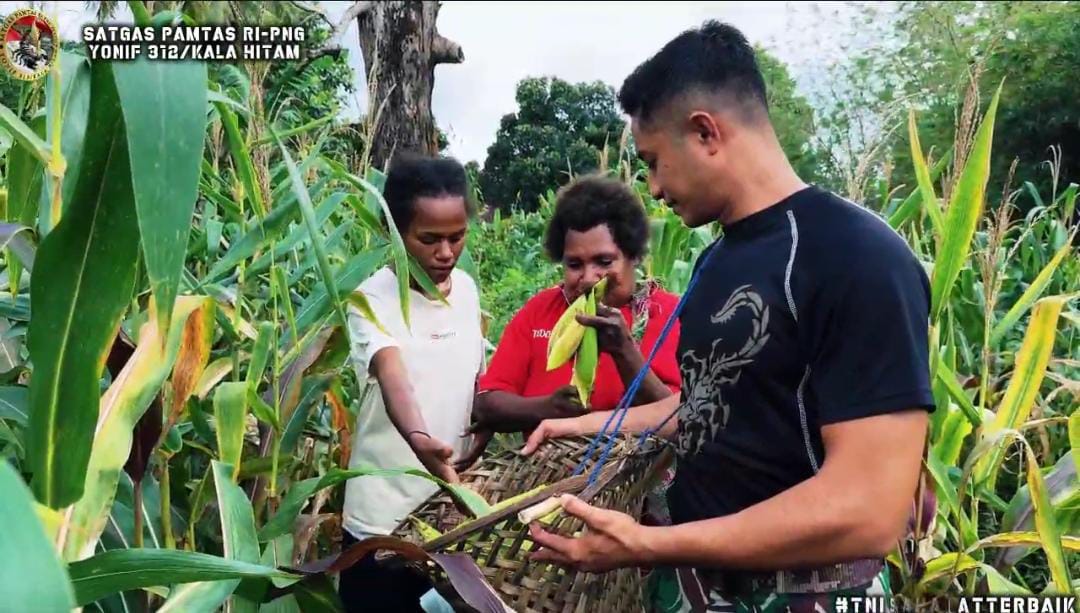 Satgas Yonif 312/KH Panen Jagung Bersama Masyarakat Perbatasan Wujudkan Ketahanan Pangan di Ujung Negeri