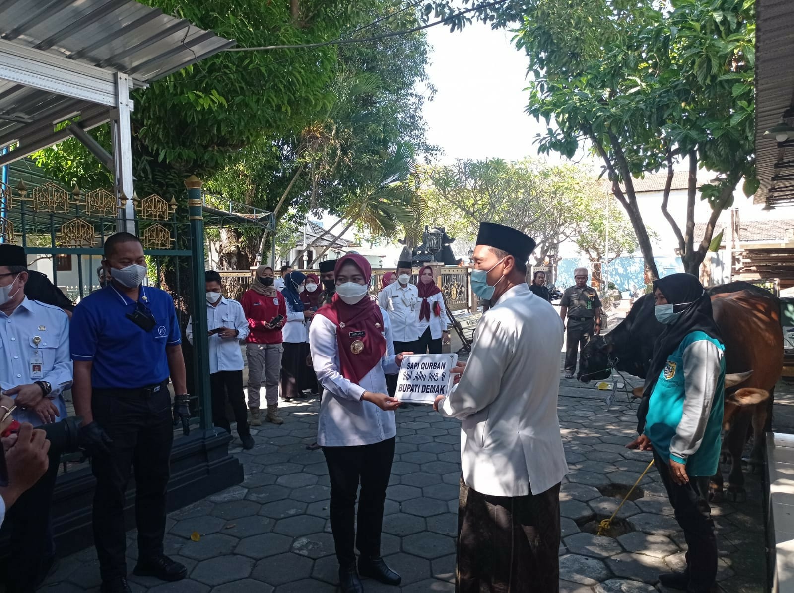 Dalam sambutannya, Bupati Demak, Eisti’anah menyampaikan, kedua hewan qurban tersebut diatas namakan seluruh masyarakat Kabupaten Demak.