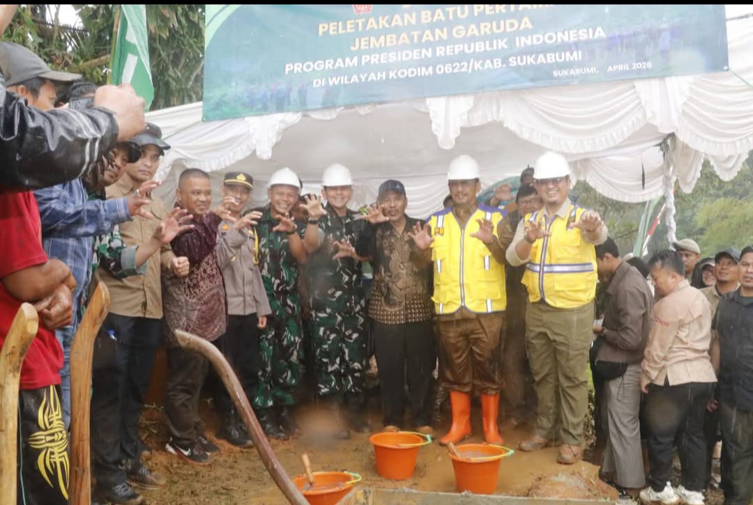 SUKABUMI || Bedanews.com – Bupati Sukabumi, H. Asep Japar bersama Komandan Korem 061/Surya Kencana, Brigjen TNI Thomas Rajunio, dan Komandan Kodim 0622/Kabupaten Sukabumi, Letkol Inf Agung Ariwibowo didampingi Kadis Perkim Kabupaten Sukabumi, Sendi Apriadi berkeliling ke sejumlah kecamatan di Kabupaten Sukabumi, semua itu dilakukan untuk meresmikan dan membangun Jembatan Garuda di beberapa titik di Kabupaten Sukabumi.