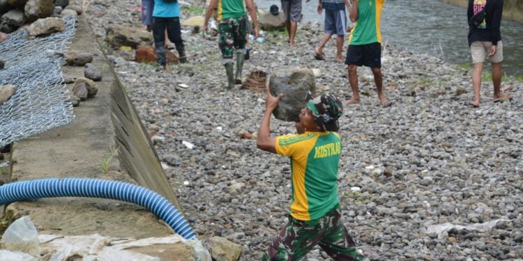 Ambon – bedanews.com – Dalam rangka mencegah terjadinya banjir, Satgas Yonarmed 1 Kostrad melalui Pos Ramil Waiheru menggelar karya bakti bersama warga memasang bronjong kawat di Sungai Waiheru, Desa Waiheru, Kec. Teluk Ambon Baguala, Ambon, Maluku, Minggu (11/9/2022).