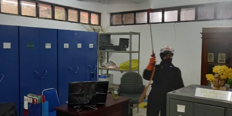 CIMAHI, BEDANews.com – Pemerintah Kota Cimahi melalui Satpol PP dan Damkar Kota Cimahi, BPBD Kota Cimahi bekerjasama dengan PMI Kota Cimahi melakukan aksi penyemprotan cairan disinfektan di seluruh area perkantoran pemkot Kota Cimahi pada  Selasa siang (22/6/2021). Aksi ini merupakan bagian dari usaha mencegah penyebaran virus Covid-19 yang makin meluas dikalangan ASN Pemkot Cimahi.