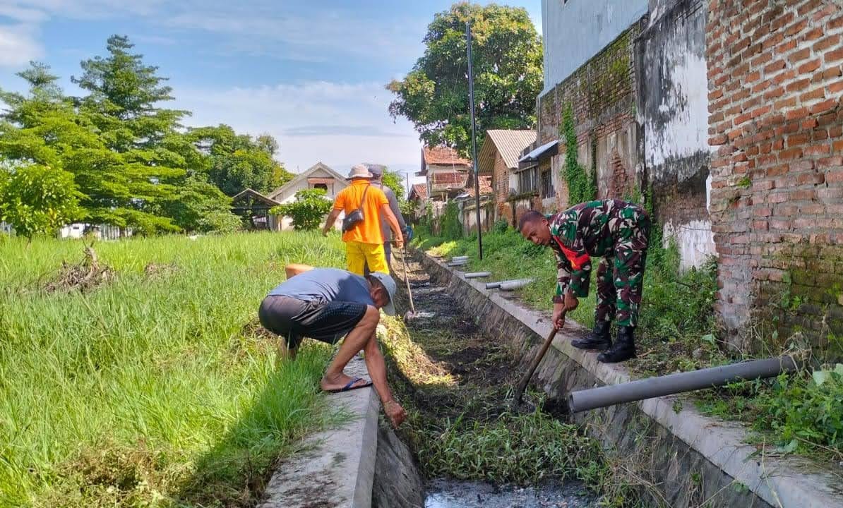 TULUNGAGUNG || Bedanews.com – Babinsa/Kelurahan Kampungdalem, Sertu Tugimin, anggota Koramil Tipe B 0807/01/Tulungagung, bersama warga melaksanakan kegiatan kerja bakti membersihkan saluran air dari sampah dan rumput liar di Kelurahan Kampungdalem, Kecamatan Tulungagung, Kabupaten Tulungagung Jawa Timur, Sabtu (11/10/2025).