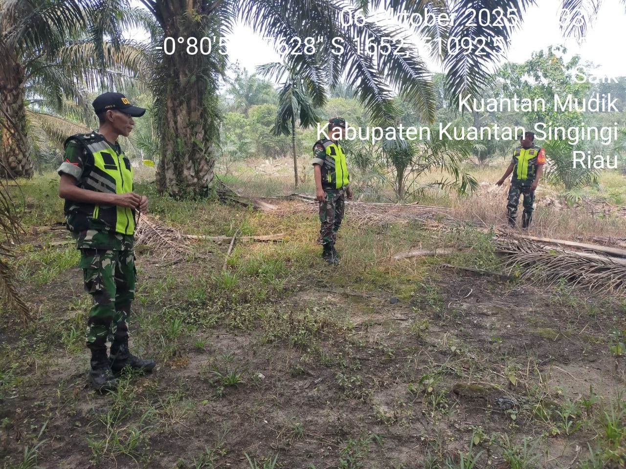 Babinsa Koramil 08/KM Kodim 0302/Inhu Serda Gusman bersama 3 orang anggota Lainnya melaksanakan kegiatan patroli pencegahan kebakaran hutan dan lahan (karhutla) Di Desa saik kecamatan Kuantan mudik kabupaten Kuantan Singingi. Senin ( 06/10/2025 ).