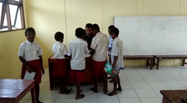 Keerom – bedanews.com – Personel Satgas Pamtas RI-PNG Yonif 126/KC Pos Bompay, perkuat tenaga pendidik di perbatasan Papua dengan mengajar di Sekolah SD Negeri 1 Bompay, Distrik Waris, Kabupaten Keerom.