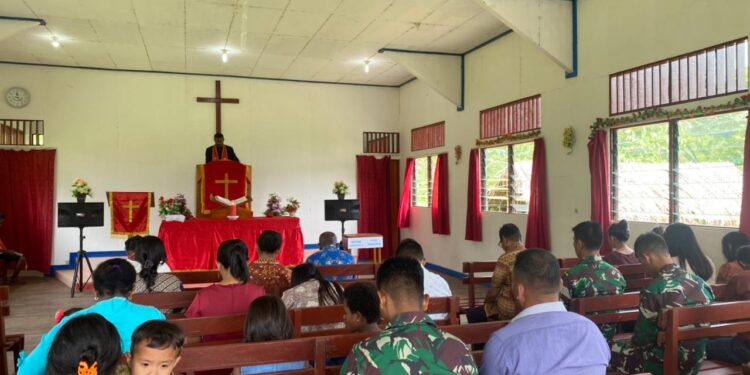 Mamberamo Raya – bedanews.com – Personel Satgas Pamtas RI-PNG Yonif Raider 142/KJ Pos Dabra melaksanakan kegiatan pengamanan Gereja dan melakukan pembersihan Masjid, bertempat di Kampung Dabra, Distrik Mamberamo Hulu, Kabupaten Mamberamo Raya, Papua, Minggu (24/7/2022).