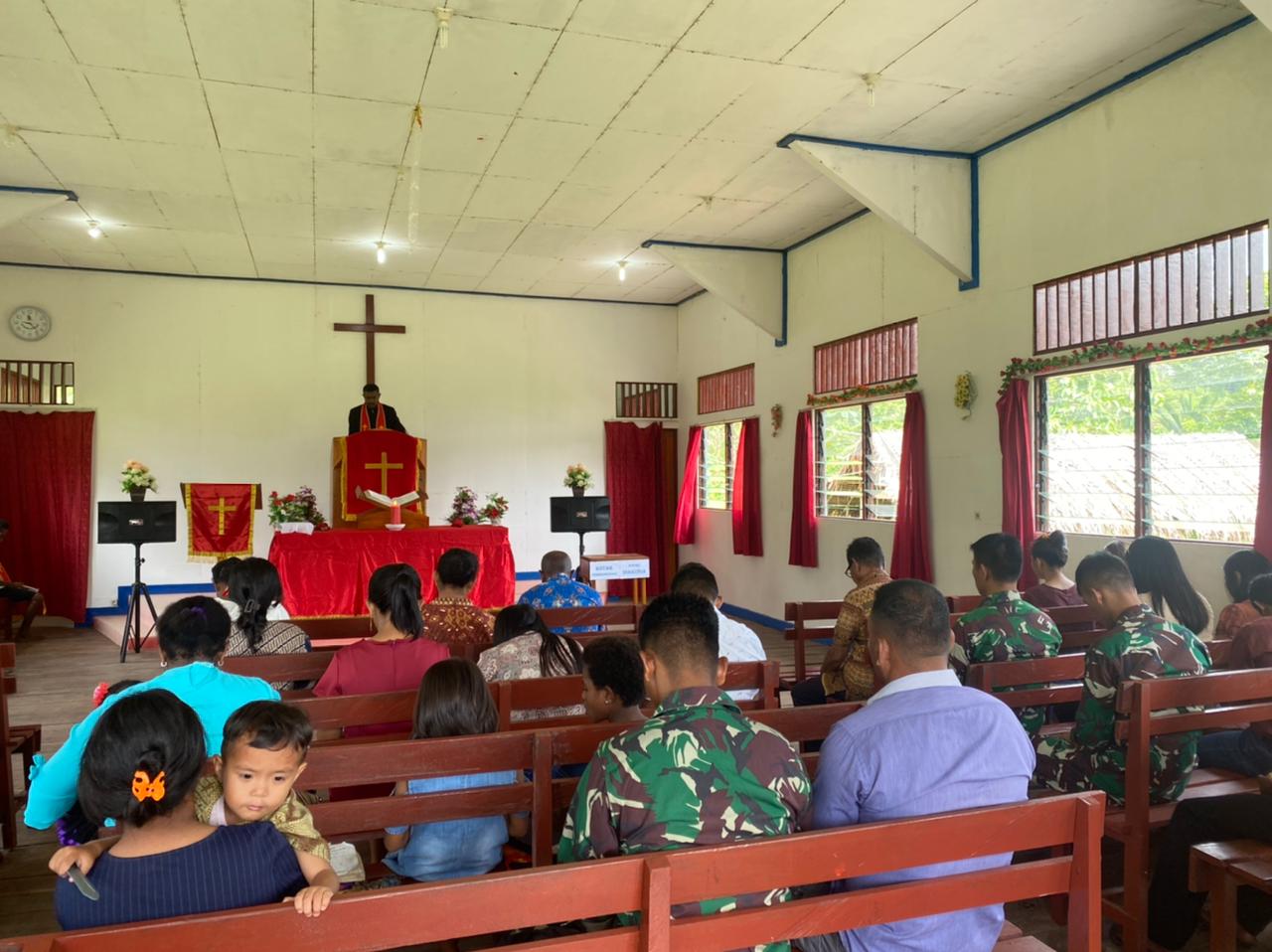 Mamberamo Raya – bedanews.com – Personel Satgas Pamtas RI-PNG Yonif Raider 142/KJ Pos Dabra melaksanakan kegiatan pengamanan Gereja dan melakukan pembersihan Masjid, bertempat di Kampung Dabra, Distrik Mamberamo Hulu, Kabupaten Mamberamo Raya, Papua, Minggu (24/7/2022).