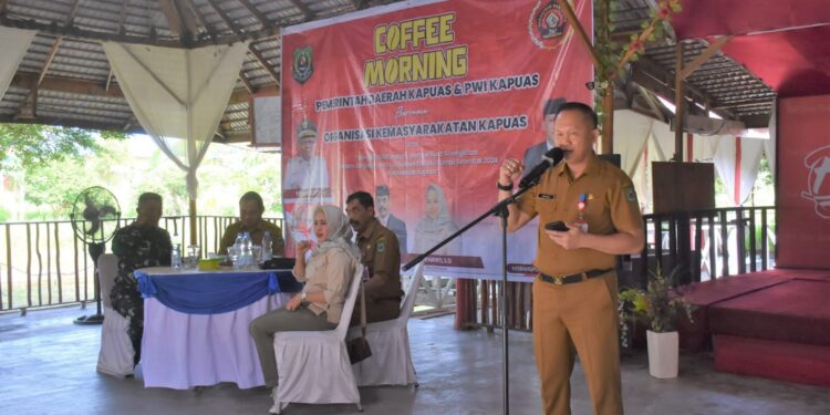 KUALA KAPUAS || Bedanews.com – Pemerintah Kabupaten Kapuas melalui Badan Kesatuan Bangsa dan Politik (Kesbangpol) Kabupaten Kapuas menggelar Coffe Morning bersama Persatuan Wartawan Indonesia (PWI) Kapuas dan Organisasi Kemasyarakatan (Ormas) se-Kabupaten Kapuas, Selasa (16/7/2024) di Rumah Makan Buli Lewu, Jalan Jepang, Kuala Kapuas.