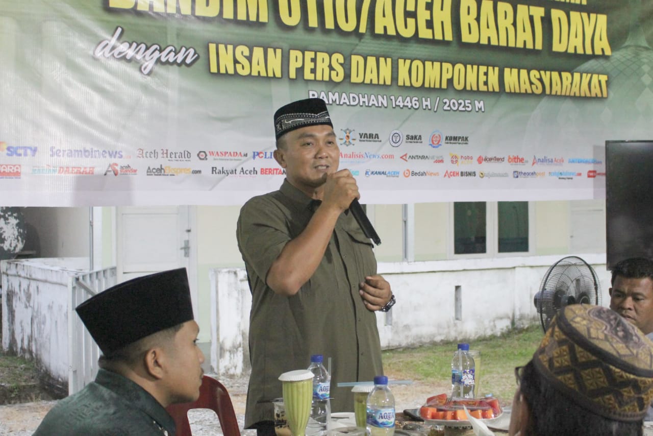 Dalam sambutannya, Dandim mengapresiasi peran serta media dalam menjaga kondusifitas wilayah, terutama pasca tahun politik dengan dilantiknya Safaruddin-Zaman Akhli sebagai Bupati dan Wakil Bupati Abdya terpilih periode 2025-2030.