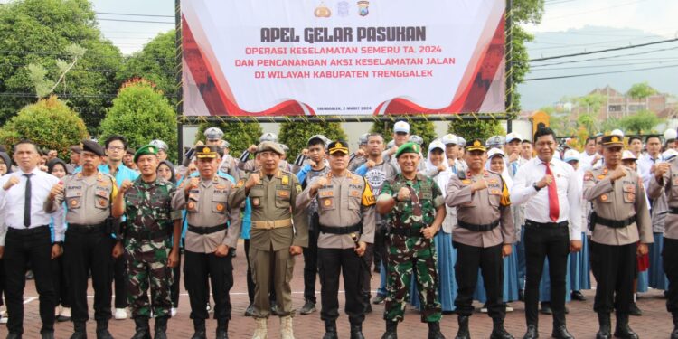 Trenggalek – bedanews.com – Suara komitmen untuk menciptakan perubahan positif bergema dalam Apel Gelar Pasukan Operasi Keselamatan Semeru 2024 yang dipimpin oleh Dandim 0806/Trenggalek, Letkol Czi Yudo Aji Susanto, S.Sos, M.A dan Kapolres Trenggalek, AKBP Gathut Bowo Supriyono, S.H, S.I.K, M.Si.