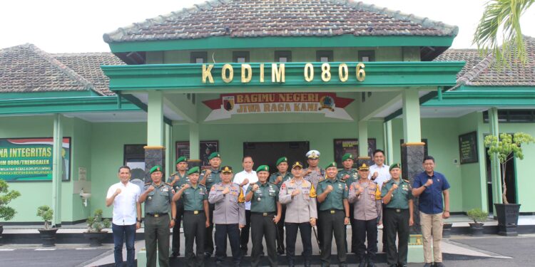 TRENGGALEK || Bedanews.com – Dalam rangka memperkokoh sinergitas antara TNI dan Polri demi menjaga keamanan dan ketertiban di Kabupaten Trenggalek, Dandim 0806/Trenggalek, Letkol Czi Yudo Aji Susanto, S.Sos, M.A, dengan antusias menerima kunjungan silaturahmi perdana dari Kapolres Trenggalek, AKBP Indra Ranu Dikarta, S.I.K, M.Si, beserta Pejabat Utama (PJU) Polres di Makodim 0806/Trenggalek, Selasa (23/7/2024).