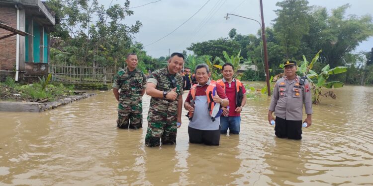 Sragen – bedanews.com – Dandim 0725/Sragen, Letkol Inf Yoga Yastinanda, S.I.P bersama Sekda Sragen, dr. Hargiyanto, Kabag ops Polres Sragen, Kompol Dudi, Agus Cahyono, Kepala Badan BPBD melaksanakan pengecekan dan pemantauan terhadap wilayah yang terdampak banjir di Desa Gedongan, Kecamatan Plupuh dan Masaran, Jum’at (17/2/2023) sore.