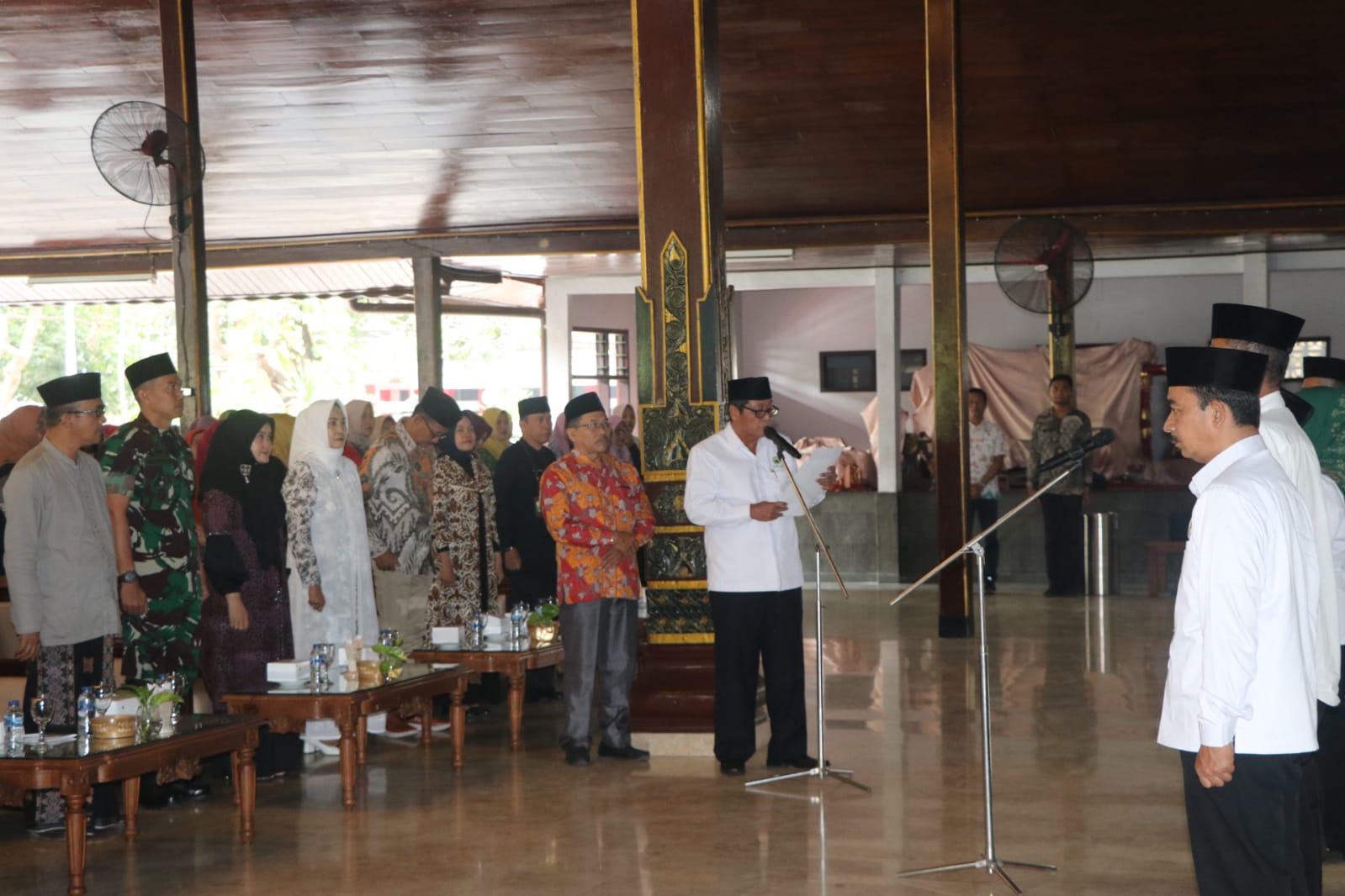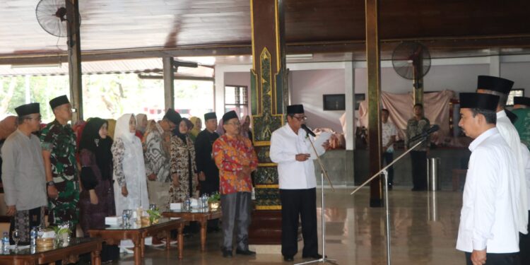 Tulungagung – bedanews.com – Komandan Kodim 0807/Tulungagung, Letkol Czi Nooris Agus Rinanto, S.I.P dan Ketua Persit Cabang XXI Kodim 0807, Ny. Irma Nooris Agus Rinanto mengikuti acara Maulid Nabi Muhammad SAW tahun 1445 H/2023 M dan pengukuhan pengurus DMI (Dewan Masjid Indonesia) Kabupaten Tulungagung masa bakti 2022-2026 di Pendopo Kongas Arum Kusumaning Bongso Jl. R.A Kartini No. 01 Kelurahan Kampungdalem, Kecamatan Tulungagung, Kabupaten Tulungagung, Jawa Timur, Jum’at (20/10/2023).