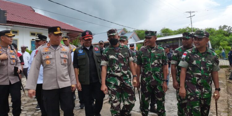 AMBON – bedanews.com – Komandan Pangkalan Utama TNI Angkatan Laut (Danlantamal) IX Ambon Brigadir Jenderal TNI (MAR) Said Latuconsina M.M., M.T. dampingi Kepala Badan Nasional Penanggulangan Bencana (BNPB) Letjen TNI Suharyanto S.Sos., M.M., beserta Pangdam XVI Pattimura dan Kapolda Provinsi Maluku tinjau lokasi terdampak gempa bumi di Saumlaki, Kabupaten Kepulauan Tanimbar, Kamis (12/01/2023).