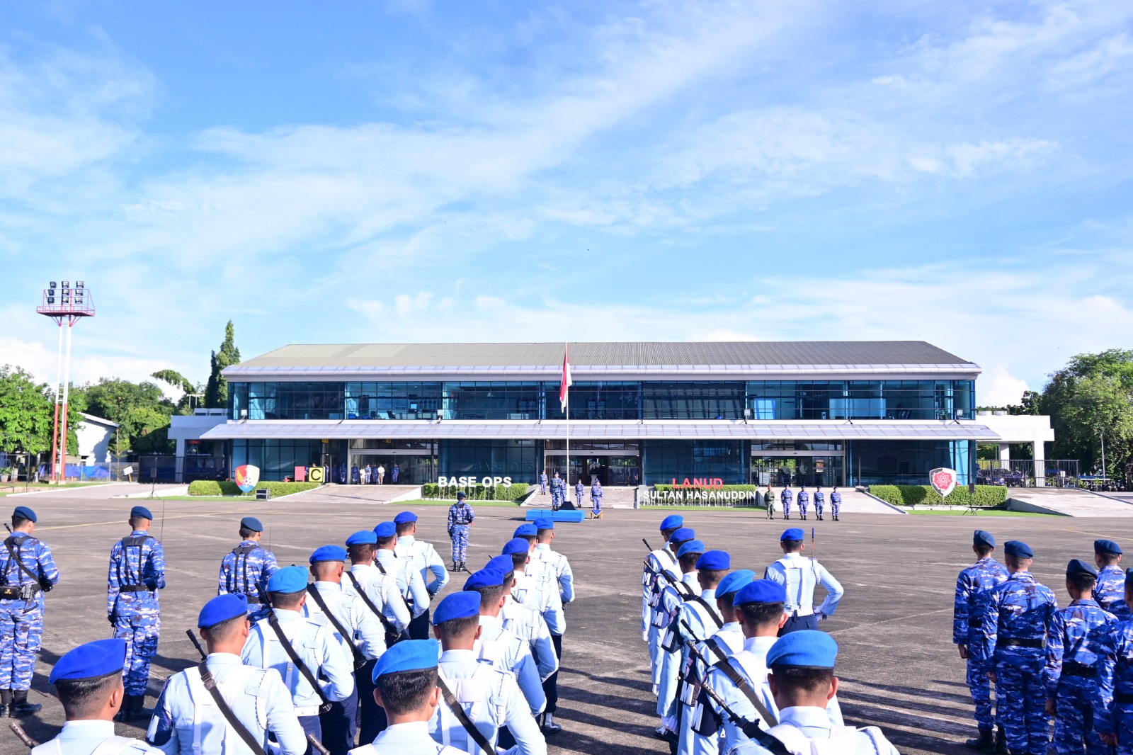 Makassar – Danlanud Sultan Hasanuddin, Marsma TNI Arifaini Nur Dwi Dwiyanto, M. Han, memimpin upacara 17-an yang dilaksanakan rutin setiap bulan, bertempat di Apron Baseops, Lanud Sultan Hasanuddin, Makassar, Kamis (17/4/2025).