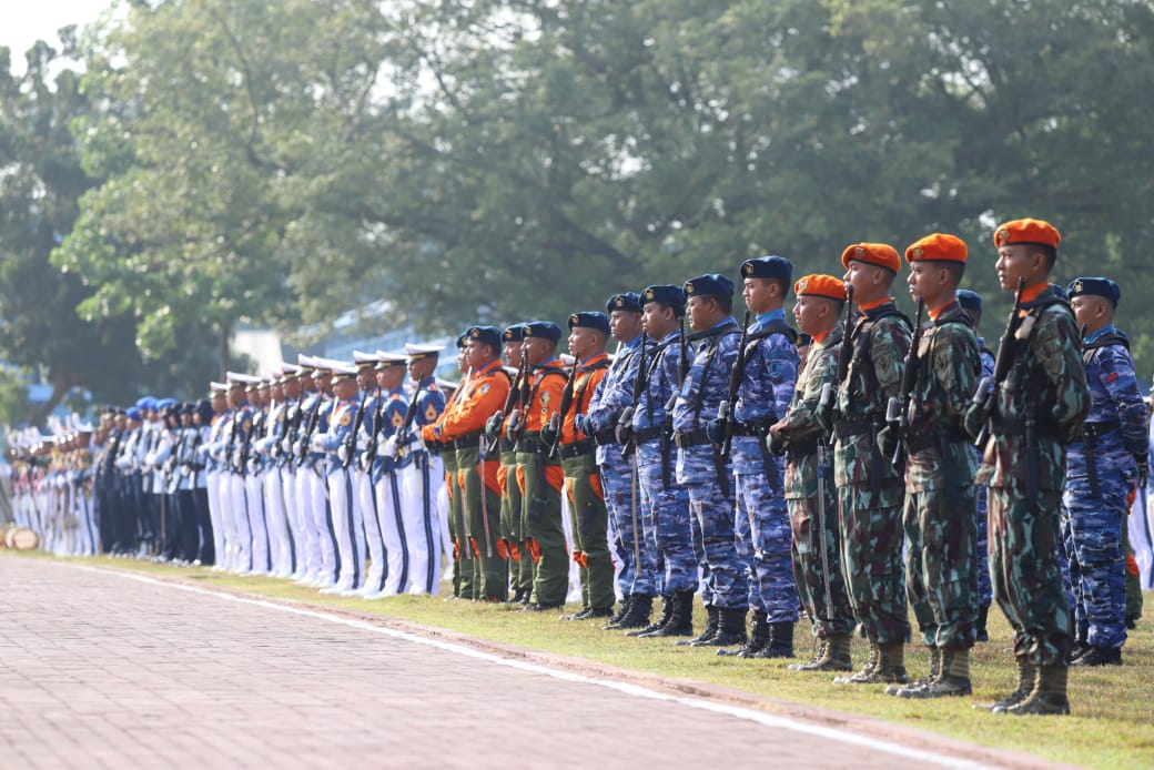 Puncak Peringatan Ke-78 Hari Bakti TNI AU, Personel Lanud Sultan Hasanuddin Ikuti Upacara di Makoopsud II