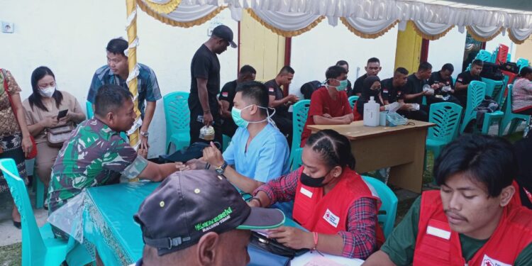 Timika, bedanews.com — Bertempat di Gereja Ebeneser, Kel. Ninggonarama, Distrik Mimika Baru, Kabupaten Mimika, Danramil 1710-02/Timika turut berpartisipasi dalam kegiatan Bhakti Sosial Donor Darah dalam rangka memperingati Ulang Tahun Injil masuk Papua ke-168, Sabtu (21/01/2023). Kegiatan tersebut juga diikuti oleh 5 orang anggota Koramil 1710-02/Timika sebagai bentuk kepedulian sosial kepada sesama.