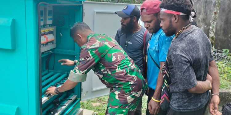 Sebagai wujud dukungan terhadap program pemerintah dalam rangka meningkatkan kesejahteraan masyarakat di wilayah binaan yang akan menerima bantuan PLTS tersebut, Danramil 1710-04/Tembagapura Kapten Chb Eliazar Manuk Allo beserta 1 orang Babinsa membantu dan mendampingi 4 orang perwakilan masyarakat Kp. Tsinga Distrik Tembagapura dalam kegiatan pelatihan pemasangan/perakitan peralatan PLTS, bertempat di Kantor Unit PLN Timika, Jl. Leo Mamiri, Distrik Mimika Baru, Kab. Mimika, Senin (26/02/2024).