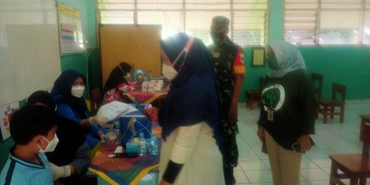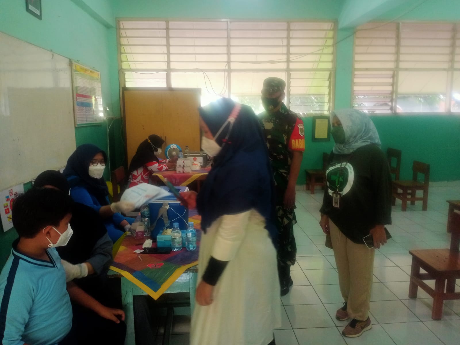 Jakarta – bedanews.com – Koramil 05/Kramatjati bersama Polkes Matraman dan RS Pusdikkes kembali melakukan vaksinasi Covid-19 kepada 200 siswa SDN 01 Dukuh dengan Vaksin yang berikan jenis Sinovac, yang dipimpin Danramil 05/Kramatjati yang juga merangkap Danramil Makasar, Kapten Inf Asnawi, bertempat di SDN 01 Dukuh Jln. Raya Pondok Gede No.20 RT.01/01 Kelurahan Dukuh, Sabtu (26/12/21).