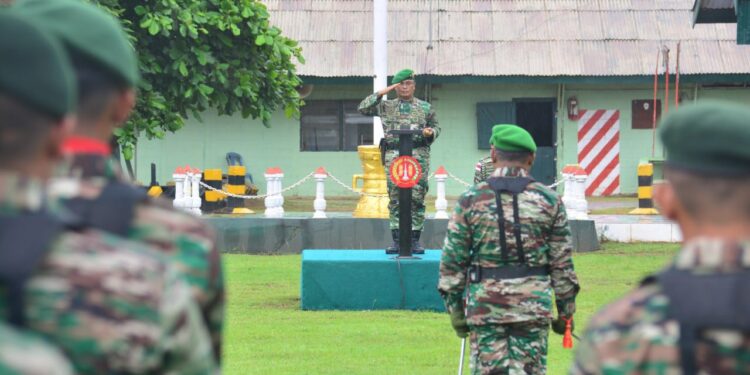 MERAUKE, bedanews.com – Dalam rangka Hari Juang TNI AD tahun 2022, Korem 174/ATW menggelar upacara terpusat dengan Inspektur Upacara Danrem 174/ATW Brigjen TNI Reza Pahlevi, S.E., Komandan Upacara Mayor Arm Gordon (Pjs. Kasdim 1707/Merauke) diikuti kurang lebih 300 personel TNI AD, di hadiri oleh Kasrem 174/ATW beserta seluruh Perwira Korem 174/ATW, para Dansat, Kabalak Disjan serta Ketua Persit Ny. Iswati Reza Pahlevi beserta anggota Persit KCK Koorcab Rem 174 PD XVII/Cenderawasih bertempat di Lapangan Makodim 1707/Merauke, Jalan Mandala Kel. Mandala, Distrik Merauke, Kab. Merauke, Provinsi Papua Selatan, Kamis (15/12/2022).