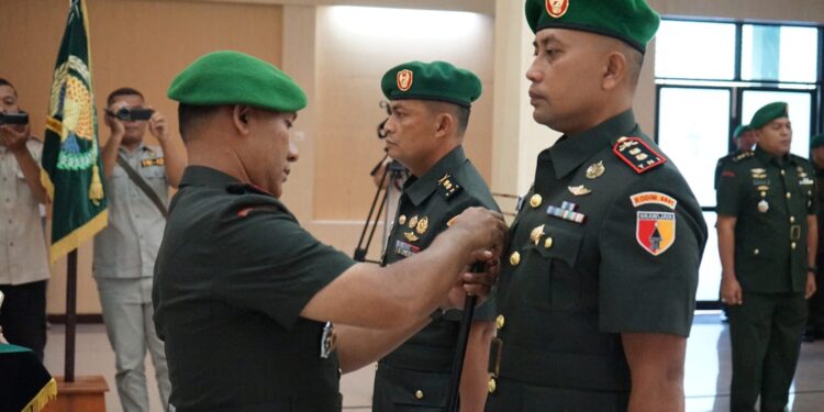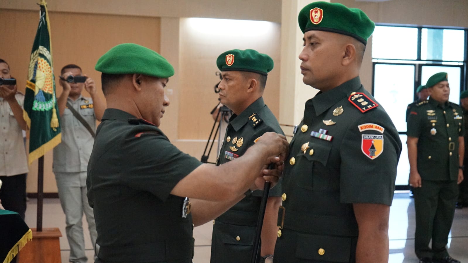 MADIUN || bedanews.com – Danrem 081/DSJ, Kolonel Inf H. Sugiyono memimpin serah terima jabatan (Sertijab) Dandim 0801/Pacitan dari Letkol Inf Roliyanto kepada Letkol Arh Imam Musahirul, bertempat di Aula Jenderal Sudirman Makorem 081/DSJ, Jl. Pahlawan No. 50 Kota Madiun, Senin (13/5/2024).