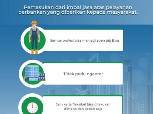 bank bjb membuka kesempatan bagi seluruh masyarakat Indonesia yang ingin mendapatkan penghasilan tambahan dengan menjadi mitra agen perbankan bank bjb. Masyarakat dapat mendaftarkan diri menjadi Agen Laku Pandai bjb BiSA! yang merupakan program kolaborasi antara Otoritas Jasa Keuangan (OJK) dengan seluruh perbankan di Indonesia.