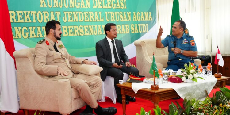 Jakarta – Kepala Pusat Pembinaan Mental (Kapusbintal) TNI Laksma TNI Drs. Ian Heriyawan, CHRMP menerima kunjungan Delegasi Ditjen Urusan Agama Angkatan Bersenjata Arab Saudi Major Jenderal Musfer Hasan Al lsa, Direktorat Urusan Agama Angkatan Bersenjata Arab Saudi yaitu Letnan Kolonel Staf Khalid Musfer Alaliani, Kapten Meshari Mohammed Aljuaid, dan Ustand Pembantu Khalid Abdullah Alrumi, dalam rangka peningkatan kerjasama hubungan militer di kedua negara, bertempat di Ruang Rapat Pusbintal Mabes TNI, Cilangkap, Jakarta Timur, Selasa (17/10/2023).