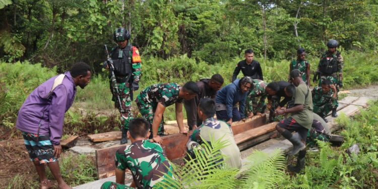 Yahukimo – Satgas Yonif Raider 200/BN berupaya selalu hadir untuk mengatasi kesulitan rakyat di sekelilingnya. Salah satu bukti implementasinya di lapangan ditunjukkan oleh personel Pos Kekey yang melaksanakan perbaikan jembatan di Kampung Kekey, Distrik Dekay, Kab. Yahukimo, Papua Pegunungan, Selasa (30/05/2023).