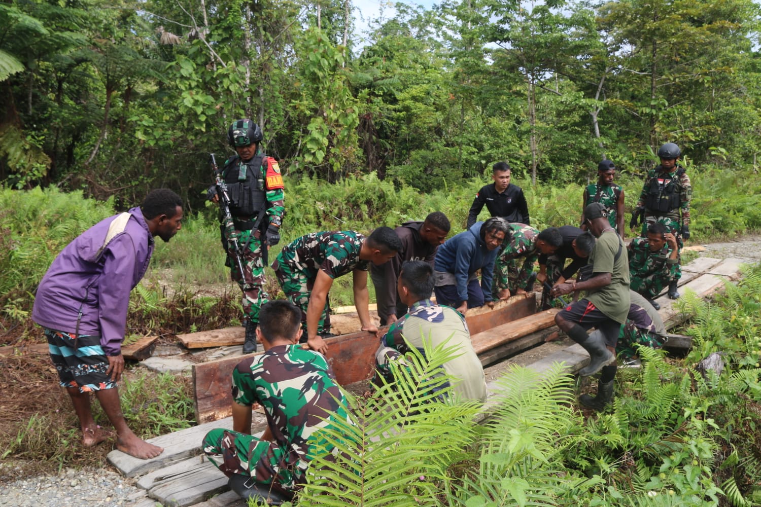 Yahukimo – Satgas Yonif Raider 200/BN berupaya selalu hadir untuk mengatasi kesulitan rakyat di sekelilingnya. Salah satu bukti implementasinya di lapangan ditunjukkan oleh personel Pos Kekey yang melaksanakan perbaikan jembatan di Kampung Kekey, Distrik Dekay, Kab. Yahukimo, Papua Pegunungan, Selasa (30/05/2023).