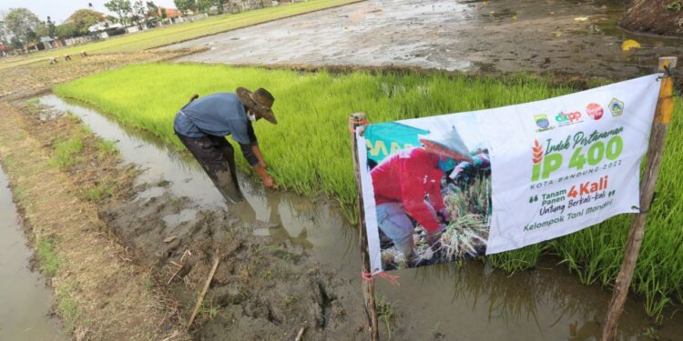 BANDUNG. BEDAnews.com – Demi meningkatkan produksi beras di Jawa Barat, Pemerintah Kota (Pemkot) Bandung mulai menggalakkan Indeks Pertanaman (IP) 400 pada 70 ha lahan persawahan di Kelurahan Derwati, Kecamatan Rancasari, Bandung.