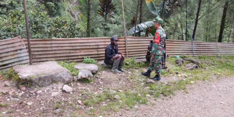 Timika, bedanews.com — Babinsa Koramil 1710-04/Tembagapura Serma Jafar senantiasa menjaga Komsos dalam rangka meningkatkan silaturahmi dan hubungan kerja yang baik di wilayah binaannya, Ia selalu rutin Komsos dengan warga binaan di Kp. Kimbeli, Distrik Tembagapura, Kab. Mimika, Rabu (11/01/2023).
