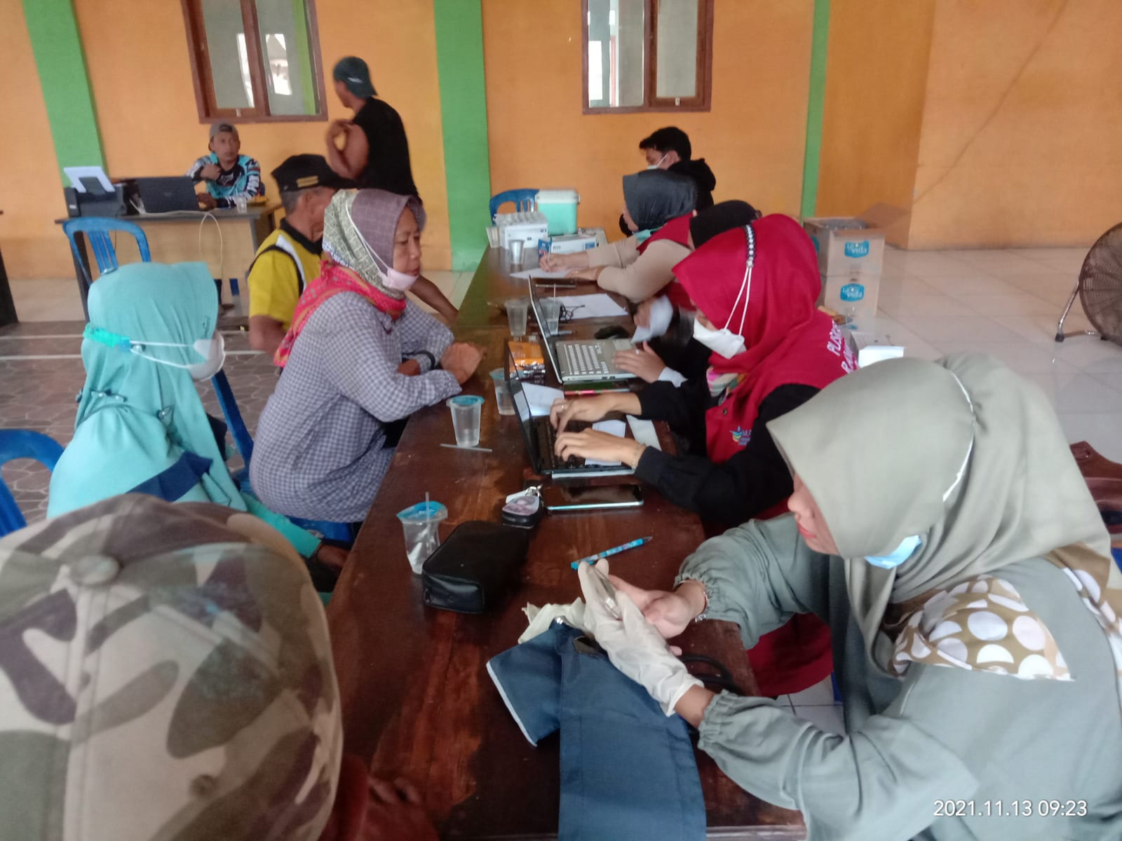 Sejak dari pagi antrian, warga sudah kelihatan memenuhi halaman aula desa kelihatan sekali animo masyarakat untuk menerima vaksinasi tersebut.