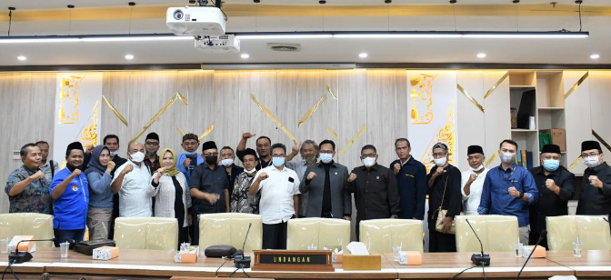 Wakil Ketua H. Oleh Soleh, S.H serta Pimpinan dan Anggota Komisi I DPRD Provinsi Jawa Barat menerima aspirasi dari Presedium TASELA terkait usulan daerah otonomi baru Tasikmalaya Selatan, Selasa (4/1/2022). (Foto Humas DPRD Jabar).