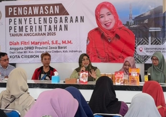*Caption : Diah Fitri Maryani,SE.MM anggota DPRD Jabar (podium tengah) melaksanakan fungsi pengawasan pelaksanaan program pemerintah di Kota Cirebon (5/10)