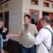 Plt. Kepala Dinas Sosial Jabar Andrie Kustria Wardhana didampingi Kepala Bidang Perlindungan dan Jaminan Sosial Enok Komariah saat menyerahkan bantuan ke desa Cibedug. KBB.