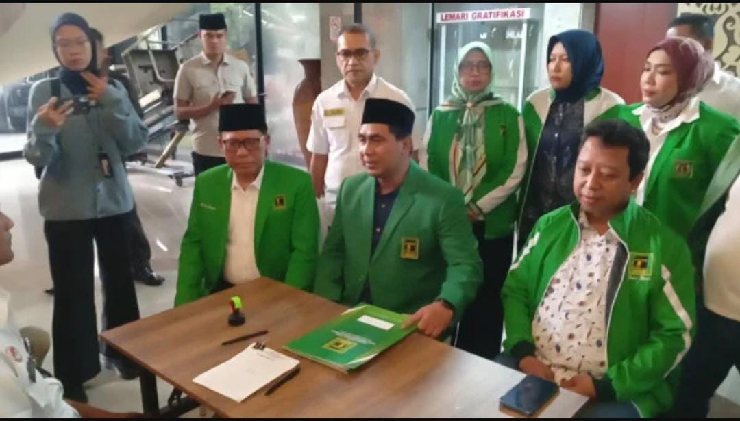 Partai Persatuan Pembangunan (PPP) kubu Agus Suparmanto hasil Muktamar Ancol menggunakan seragam lengkap berwarna hijau, yang dipimpin Taj Yasin Maimoen (Gus Yasin) dan Romahurmuziy (Rommy), mendaftarkan Kepengurusan ke Kementerian Hukum (Kemen-Kum), Jakarta Selatan, Rabu (1/10/2025) sore.