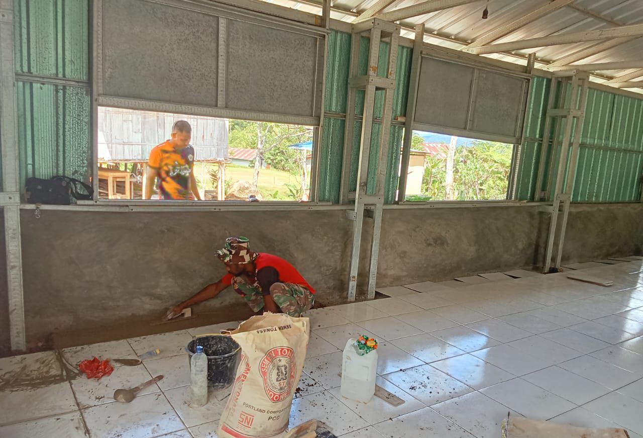 Satgas TMMD 126 Kodim Tambrauw Masuki Tahap Finishing Pemasangan Keramik dan Pengecatan Gereja Advent