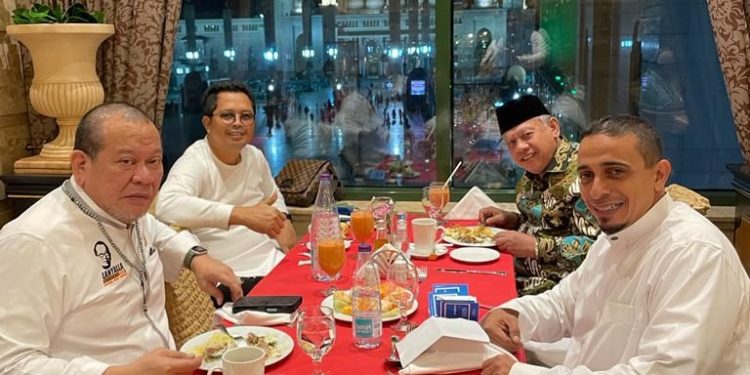 Madinah – bedanews.com – Ketua DPD RI, AA LaNyalla Mahmud Mattalitti dan Wakil Ketua DPD RI Mahyudin tiba di Madinah, Arab Saudi, Senin malam waktu setempat. Kedatangan pimpinan DPD RI itu disambut langsung Duta Besar Indonesia untuk Arab Saudi Abdul Aziz Ahmad, Senin (9/5/2022) malam waktu Arab Saudi.