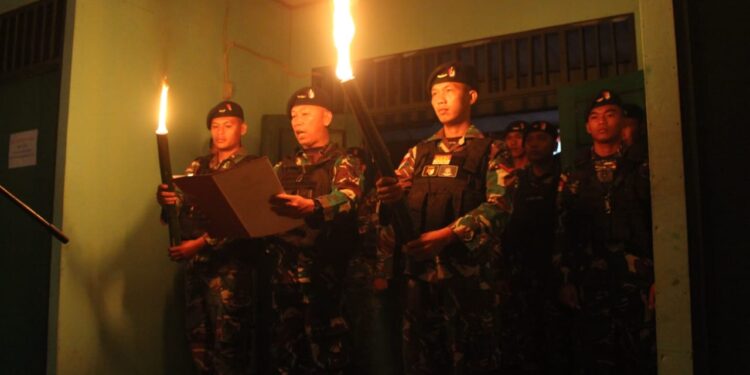 Pelaksanaan Doa bersama dengan pembacaan Alquran (Yasin bersama), dilanjutkan dengan pemotongan Nasi Tumpeng yang dilakukan oleh Danyonif Raider 142/KJ Letkol Inf Esnan Haryadi.