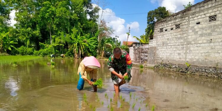 TULUNGAGUNG || bedanews.com – Babinsa Tanggung, Sertu Irawan, anggota Koramil Tipe B 0807/09 Campurdarat melaksanakan kegiatan pendampingan pertanian tanam padi di lahan milik anggota Poktan Sido Mulyo Desa Tanggung, Kecamatan Campurdarat, Kabupaten Tulungagung, Jawa Timur, Rabu (10/07/2024).