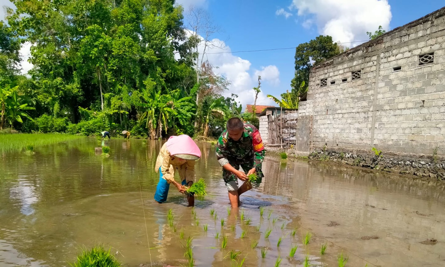 TULUNGAGUNG || bedanews.com – Babinsa Tanggung, Sertu Irawan, anggota Koramil Tipe B 0807/09 Campurdarat melaksanakan kegiatan pendampingan pertanian tanam padi di lahan milik anggota Poktan Sido Mulyo Desa Tanggung, Kecamatan Campurdarat, Kabupaten Tulungagung, Jawa Timur, Rabu (10/07/2024).
