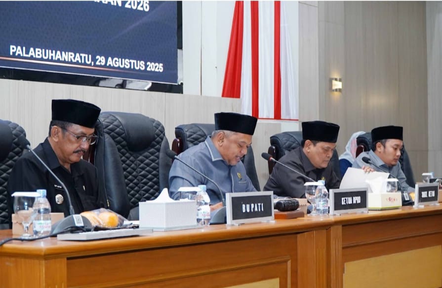 SUKABUMI || Bedanews.com – Dewan Perwakilan Rakyat Daerah (DPRD) Kabupaten Sukabumi menggelar rapat paripurna dengan agenda penanda tanganan Nota Kesepatkaan Kebijakan Umum APBD (KUA) dan Prioritas dan Platfon Anggaran Sementara (PPAS) Tahun Anggaran 2026, di Ruang Rapat Utama DPRD Pelabuhanratu, Jum’at (29/8/2025).