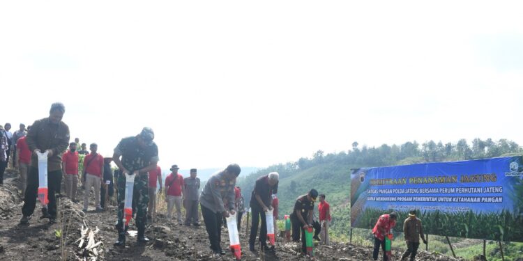 Semarang – bedanews.com – Pangdam IV/Diponegoro, Mayjen TNI Widi Prasetijono beserta Gubernur Jateng, H. Ganjar Pranowo, S.H, M.I.P., dan Kapolda Jateng, Irjen. Pol. Drs. Ahmad Luthfi, S.St.Mk., S.H melaksanakan penanaman dan panen jagung di Lahan Perhutani yang terletak di Desa Candirejo, Pringapus, Kab. Semarang, Selasa (24/01/2023).